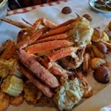 Waterfront seafood feast where you eat off the table with mallets — dinner and a show